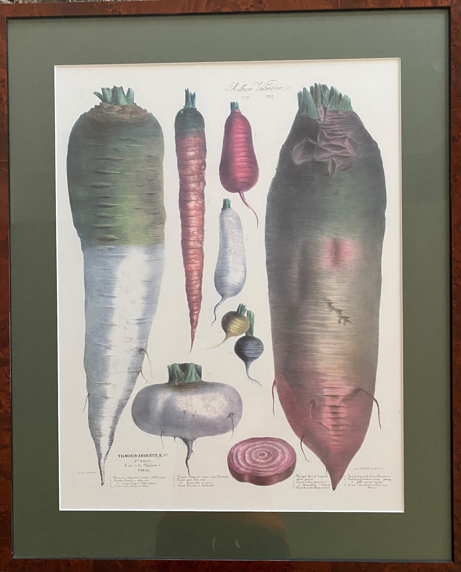 Vilmorin-Andrieux Paris, No 2, 1851Vroeger werden producten via deze tekeningen verkocht.Mooi ingelijst in Notenhouten lijst. 80 x 65 cm.